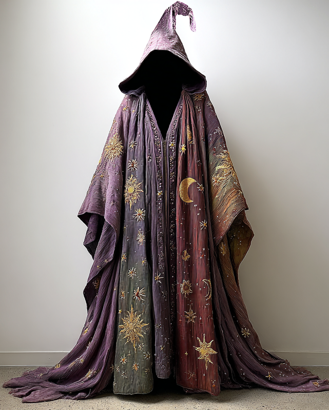 Star and moon 3D embroidery patchwork contrast color cape accd